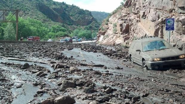 Een onweersbui in Colorado heeft een lawine van stenen, modder en puin veroorzaakt in een cayon in Manitou Springs. Enkele auto's kwamen onder de modder te zitten. Een auto werd door de modderstroom meegesleurd. Vorig jaar werd het gebied getroffen door de Waldo Canyon wildfire. Hierdoor is er nagenoeg geen vegetatie op de heuvels aanwezig.