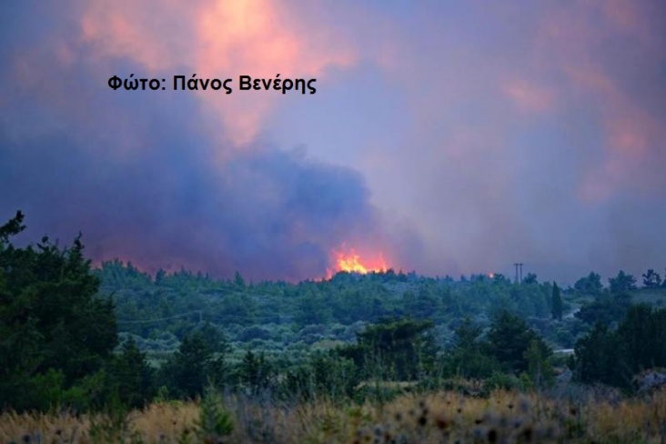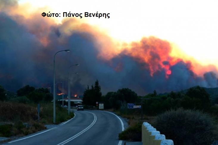 De brand ontstond gisterennamiddag rond 16 uur lokale tijd in de omgeving van het plaatsje Istrios en breidde zich door de felle wind razendsnel uit. Tijdelijk waren enkel dorpen bedreigd, het plaatsje Arnitha werd uit voorzorg geëvacueerd. Afgelopen nacht en vanochtend kreeg de brandweer van het eiland versterking van het vasteland. Gisterenavond ging de wind liggen.