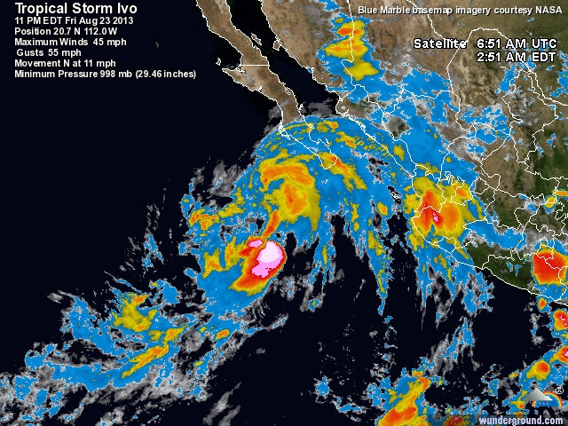 De vochtige lucht van Ivo trekt ook volgende week door de woestijn in het Zuidwesten. Dit genereert wijdverspreide stortregens en onweersbuien. Meteoroloog Alex Sosnowski waarschuwde al eerder deze week voor "een weerpatroon, welke droogte verdrijvende regen en mogelijk overstromingen kan veroorzaken". Momenteel trekt Ivo over Baja California waarbij in de komende dagen de vochtige lucht naar het noorden wordt getrokken. Zaterdagnacht teisteren zware stortbuien het noordwesten van Mexico en het gebied van het zuiden van Californië tot in het zuiden van Nevada, Arizona en het westen van New Mexico. Op zondag breiden deze buien zich uit over het grootste deel van Utah en het westen van Colorado. Binnen een paar uur kan er een aantal cm neerslag vallen. Meer dan genoeg om droge rivierbeddingen te veranderen in kolkende rivieren. Steden, die te maken kunnen krijgen met overstromingen zijn onder andere: Phoenix, Flagstaff, Salt Lake City, Las Vegas, Tucson, en Needles. De meteorologen van accuweather zijn bezorgd, dat er wijdverspreid grote overstormingen zullen ontstaan in het doorgan van St George (Utah) door Las Vegas (Nevada) en Phoenix (Arizona).