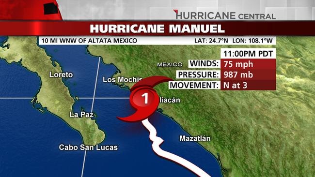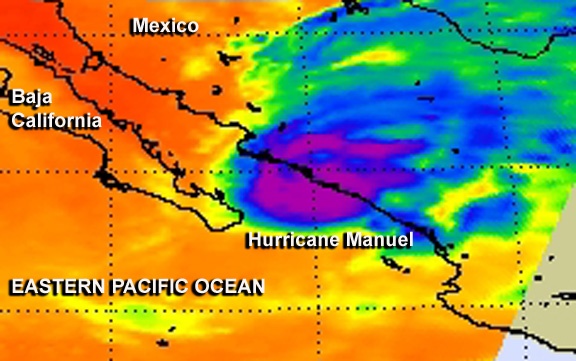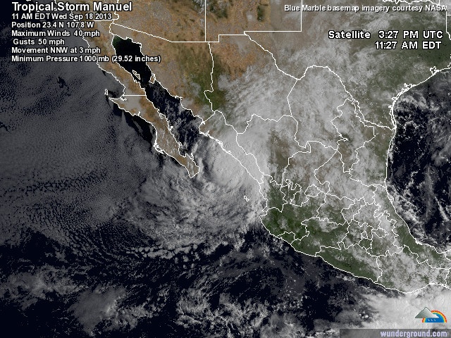 Acapulco likt de wonden en is bezig met de opruimwerkzaamheden na de doortocht van Manuel. Nu zet Manuel koers naar het volgende resort: Cabo San Lucas. Manuel kon zich herpakken boven de warme wateren voor de Mexicaanse westkust binnen slechts 36 uur nadat hij uiteengevallen was tot een tropische storing boven het zuidwesten van Mexico. Inmiddels is Manuel uitgegroeid tot een tropische storm. Het systeem blijft de kracht behouden in de komende dagen. Op vrijdag en/of zaterdag bereikt Manuel het zuidelijk deel van Baja California. Zware regenval, overstromingen en modderlawines kunnen wederom tot levensgevaarlijke situaties leiden. Er wordt 12-25 cm neerslag verwacht in de Mexicaanse staat Sinaloa en de uiterste zuidelijke delen van Sonora. In Mazatlan is ondertussen een recordhoeveelheid van meer dan 15cm neerslag in 48 uur gevallen. Ook in het zuidelijke Baja California Sur wordt 25-30cm neerslag verwacht. Dit geld vooral voor het berggebied tussen Cabo San Lucas en La Paz.