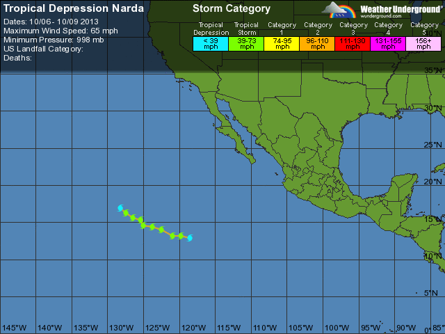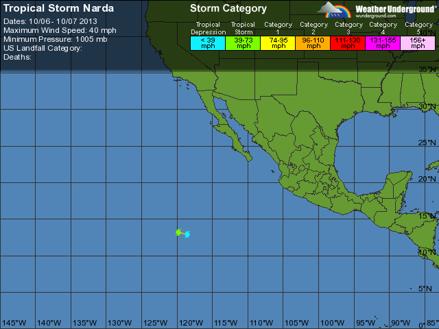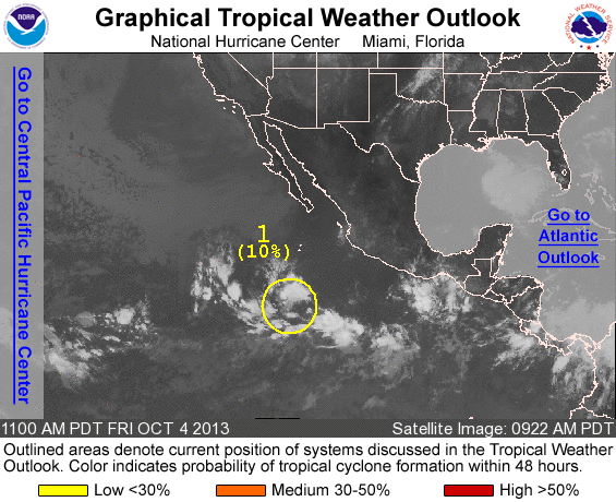 Een breed gebied van lagedruk logt ten zuiden van de zuidelijkste punt van Baja California. Het gebied bestaat uit ongeorganiseerde regen- en onweersbuien. De kans dat het gebied uitgroeid tot een tropisch systeem is klein. In de komende dagen trekt het gebied verder naar het westen.