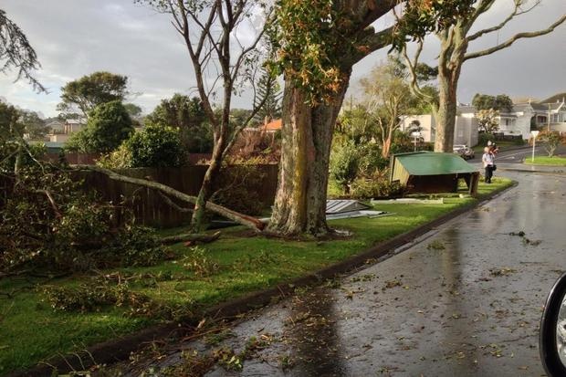 Krachtige windvlagen en een tornado hebben voor aanzienlijke schade gezorgd aan de North Shore in Auckland (Australië). De brandweer heeft meerdere meldingen binnen gekregen van omgevallen bomen en elektriciteitspalen. Het puin lag verspreidt over de straten. Grote stukken omgebogen ijzer hingen aan elektriciteitsdraden net alsof de was te drogen hangt. Volgens een politiefunctionaris is één huis volledig met de grond gelijk gemaakt. Ooggetuigen vertellen: "We hoorden eerst de wind hard waaien. Vervolgens hoorden we een vreemd fluitend geluid, wat op ons af kwam. Trampolines vlogen door de lucht en een onbekend aantal huizen heeft schade opgelopen. De tornado was niet groot, dus het was niet zo eng." Zijn 12 jarige dochter was hier niet mee eens: "Het was wel eng. We kropen in de badkamer om te schuilen. Er vloog van alles door de lucht." Echter zowel MetService als Weatherwatch bevestigen niet, dat er een tornado geweest is. Volgens deze instanties is er geen bewijs voor. Volgens Weatherwatch is er sprake van een straightline squall wind gevolgd door een plotselinge hoosbui.