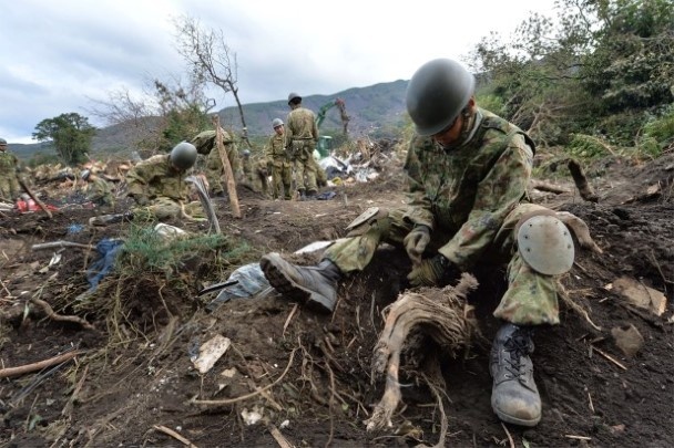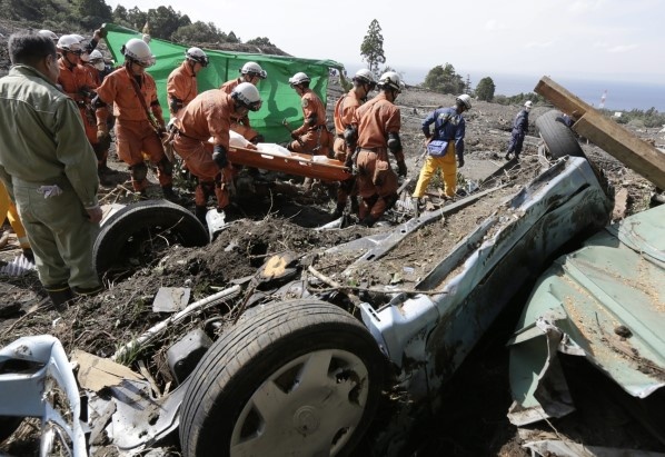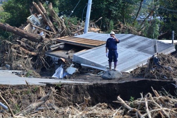 Volgens de Japanse regering worden zeker 37 mensen vermist. Ook vielen er gewonden door onder meer rondvliegende dakpannen.