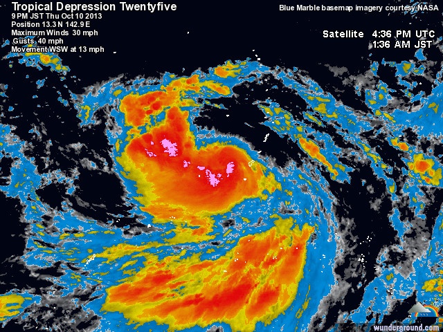 Volgens het Japans warning centre (JWTC) ligt het centrum van de Typhoon ongeveer 593 mijl ten zuidwesten van Yokosuka. Het systeem beweegt noordwaards met een snelheid van 12 knopen. De lagere circulatie is enorm met windsnelheden van ruim 100 knopen.
