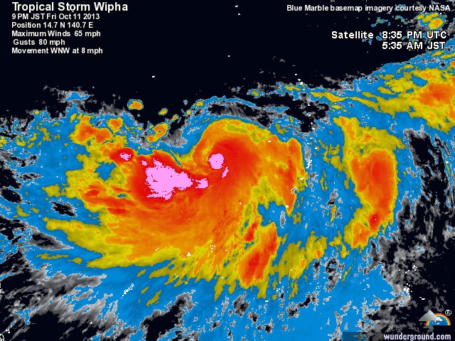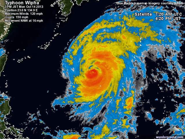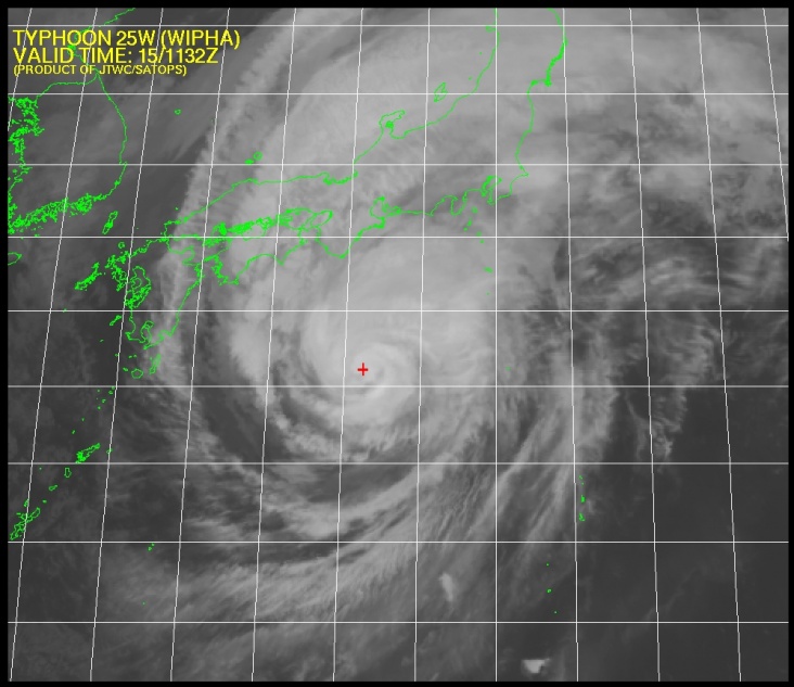De krachtige tyfoon Wipha zal binnen 24 uur Japan incl de reactor in Fukushima bereiken. De storm heeft al de dubieuze reputatie van "eens in de 10 jaar" storm. JMA heeft waarschuwingen afgegeven voor zware regenval en destructieve wind voorafgaande aan de komst van de tyfoon. In Japan zijn er al 450 vluchen geannulleerd. Dit treft zeker 60.850 passagiers. Tevens zijn er 31 diensten van de hogesnelheidstrein (bullit) vervallen ten noorden en westen van Tokio. De tyfoon komt op Japan afgestormd met een snelheid van 45 km/h. De huidige windsnelheid ligt op 50 m/s (180 km/h). Wipha zal een krachtig en groot extra-tropisch systeem blijven tijdens zijn tocht langs de oostelijke kust van Japan. Het gaat erom spannen. Als Wipha ten westen van Tokio trekt krijgt de stad met meer dan 35 miljoen inwoners te maken met een grote stormsurge en overstromingen. Dit is niet het geval als de tyfoon Tokio aan de oostzijde passeert.