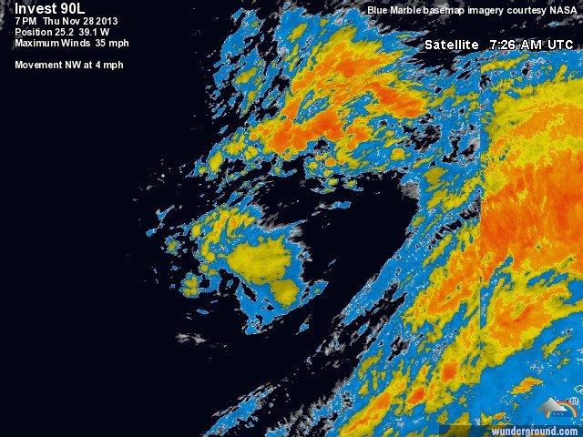 Een niet-tropisch lagedruk gebied ligt boven het oostelijk deel van de Atlantische Oceaan halverwegen tussen de benedenwindse eilanden en de Azoren. Het systeem zich geleidelijk aan het organiseren. De kans, dat deze storing uitgroeid tot een subtropische cycloon is minder waarschijnlijk, omdat het gebied richting het noordoosten trekt.