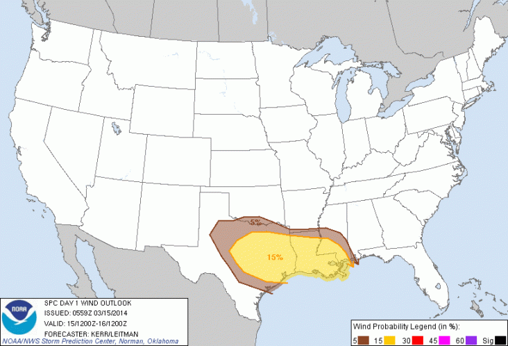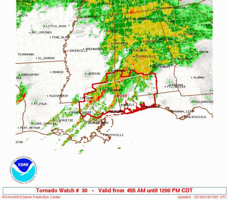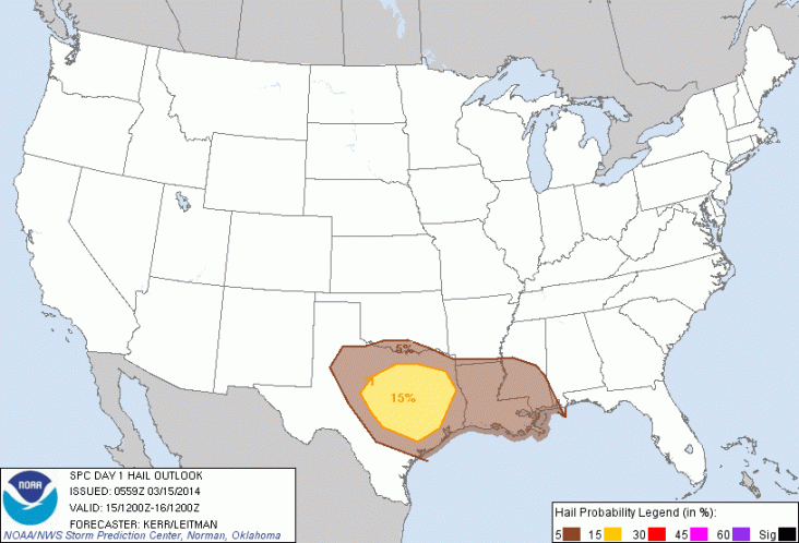 Een krachtige dip in de jetstream duikt over de Four Corners regio en dringt zaterdag Texas binnen. Warme en droge lucht botst met een warme en vochtige luchtstroom vanaf de Golf van Mexico. Het gevolg hiervan is, dat er regen- en onweersbuien boven het oosten van Texas gaan ontstaan. Ook Dallas en Houston blijven niet gespaard. De grootste dreiging van deze buien vormen de destructieve windstoten tot 96 km/h en de hagel zo grot als golfballen. Tevens kunnen er geïsoleerde tornado's ontstaan. Zaterdagnacht trekt het buiengebied richting het oosten. Zware tot zeer zware onweersbuien teisteren Louisiana en Missisippi evenals Alabama, Georgia en de Floria Panhandle. Bovenop de eerder genoemde risico's bestaat er ook een grote kans op overstromingen.