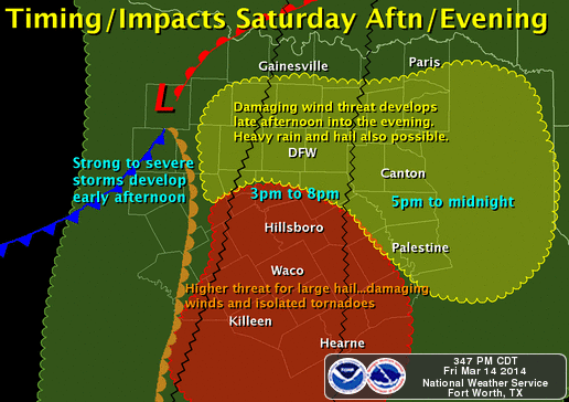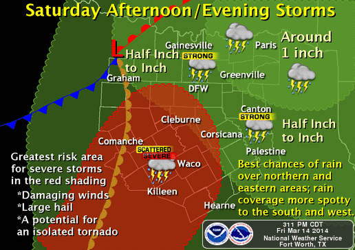 Severe weather and isolated tornadoes possible this Saturday in northern and central Texas, possibly as far north as southern Oklahoma. Stay tuned