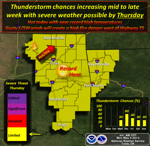 De zorgen om een nieuwe uitbraak van noodweer met tornado's groeit iedere dag. Het risicogebied ligt voornamelijk op het middengedeelte van de USA en metname op de Plains. Als eerste krijgt het land te maken met een aantal dagen van droog en warm weer. De mensen, die door de uitbraak van vorige week getroffen zijn krijgen even de tijd om de ravage op te ruimen. Vervolgens trekt een buiencomplex vanaf de Stille Oceaan het land op en zet dit weekeind koers richting het Noordwesten. Als de buien eenmaal over de Rockies getrokken zijn, bouwt hete en droge lucht zich noordwaarts over de Plains op.