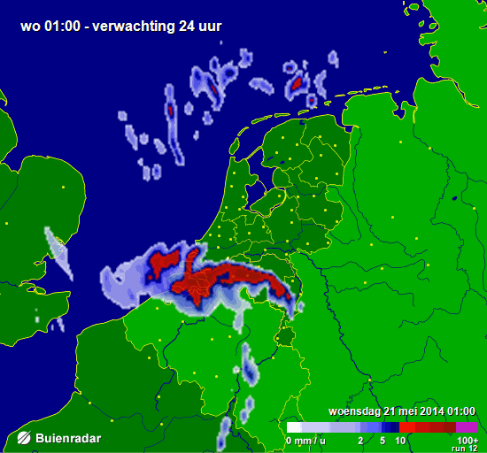 Edit: er zit onweer op de bui ten zuiden van Antwerpen, wordt wel een schampschot denk ik