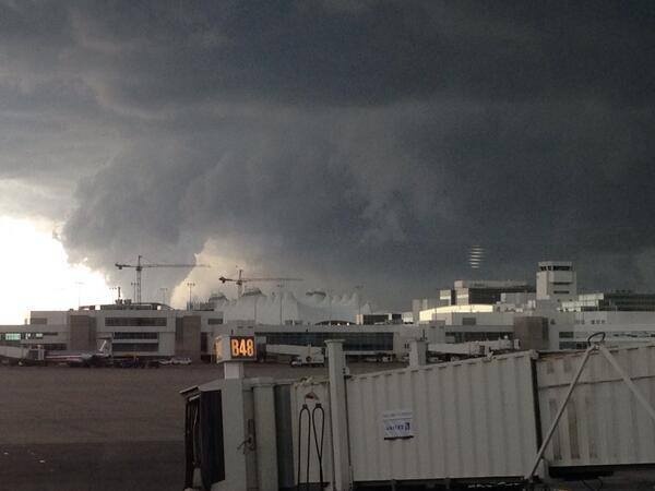 DENVER Now: Shoppers in a tornado shelter at Cherry Creek Mall & a shot from #DIA of the supercell as it approached.