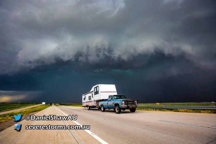 Motorist seen fleeing the Colorado tornado warned storm.. Very wise.......