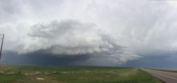 A panoramic shot of the Tornado warned storm near DIA. #COwx #AZChasers