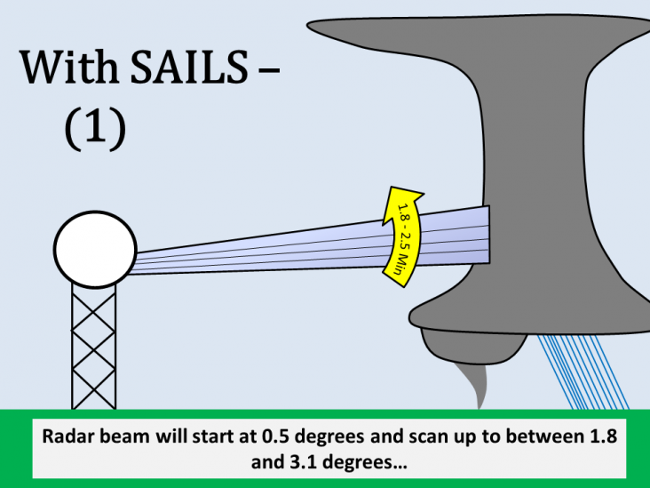 Previously, the WSR-88D would scan the horizon first at a 0.5° tilt, then progressively increase the tilt all the way up to a maximum angle of 19.5°. With this new software, titled Supplemental Adaptive Intra-Volume Low‐Level Scan (SAILS), the radar will now perform a low-level 0.5° scan in the middle of its progression up to the 19.5° tilt. The images below describe this new process visually.