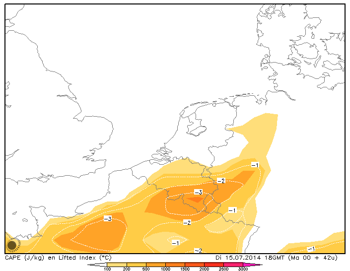 Woensdag cape 1000-1500 shear 10-15 kts (single cell/pulse) kansen zijn er voor ctrl belgie en zo belgie mischien dat nederlands limburg wat meepikt