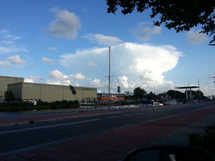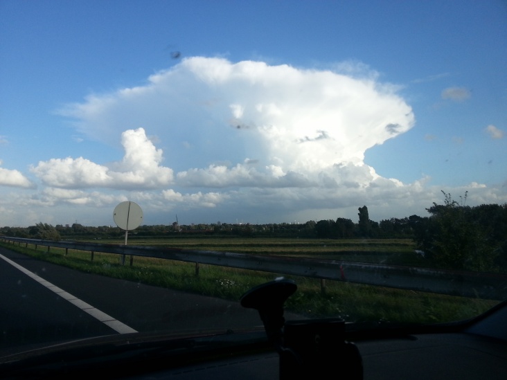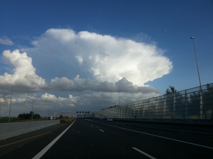 (11-08-2014) omstreek 19.30 de bui die onder Amsterdam richting Utrecht trok gezien vanaf de A8 richting Amsterdam