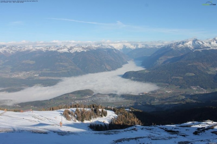 De laatste mist kruipt langzaam het dal uit onder de ::Kronplatz (I)