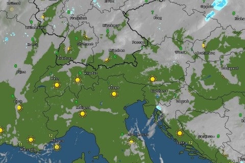 Een zwak warmtefront schampt vandaag de noordelijke Alpen. Niets om ons zorgen over te maken en enkel de oostelijke Alpen zullen wat meer last ondervinden van overtrekkende bewolking of wolkenvelden. Hoe meer naar het westen en in het bijzonder naar het zuiden hoe minder wolken en dus meer zon. Neerslag wordt er niet berekend, de wind is zwak tot matig uit noord tot noordwestelijk richtingen.