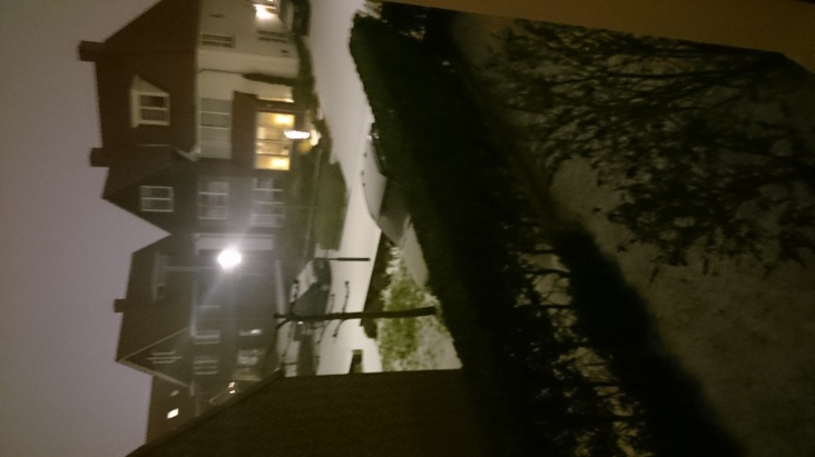 Lantaarnpaal staren is wat ik nu doe, wel natte sneeuw volgens mij maar het is in ieder geval een beetje wit.