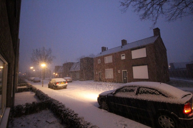 Deze foto is vanmiddag rond 14:00 uur gemaakt. Er ligt wel 5 cm sneeuw, jammer dat het maar van korte duur is...