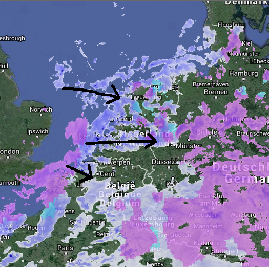 Moeilijk te zeggen. Dit is nu (s)nowcasten. Radars en satallietbeelden kijken dus