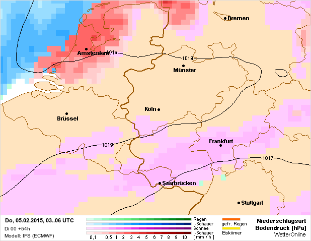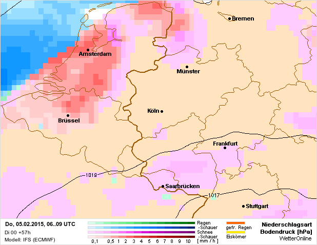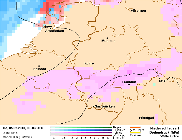 De temperatuur is overal onder nul tijdens de sneeuwbuien. In de middag kan het maximaal 1 graden worden maar wel bij dauwpunten van -2 tot -5 in het westen dus van dooi zal geen spraken zijn.Nu hopen dat het signaal ondersteund wordt in de pluim zoals Svenne daarnet al zei. En dat het signaal gelijk blijft of sterkter wordt.