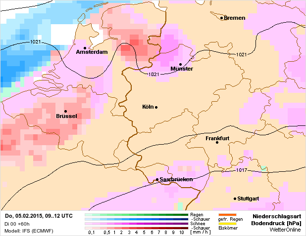 NEERSLAG: Vannacht trekt er nog een redelijk actieve buienlijn over het land zuidwaarts. Mede door o.a. de drukstijgingen en de windruiming zal de buiigheid zich beperken tot de kust. In de nacht van dinsdag naar woensdag neemt de buiigheid weer toe (bovenlucht wordt weer kouder). Aandachtspunt is de neerslagsoort en intensiteit. Buiigheid actueel (natte) sneeuw en regen waargenomen. Met name in de kustprovincies en boven zee kan ook nog een klap onweer voorkomen.