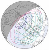 Na vrijdag moeten we onze hoop vestigen op 12 augustus 2026, die gedurende de eerste helft van deze eeuw, de allergrootste verduistering oplevert. De totaliteitszone loopt dan van IJsland in een boog om de Britse eilanden heen naar Noord-Spanje, waar de zon dan, totaal verduisterd, ondergaat. In ons land gaat de zon onder op het moment dat de verduistering net voorbij is, maar op het hoogtepunt, ruim een uur eerder, is de verduistering dan ongeveer 90%.