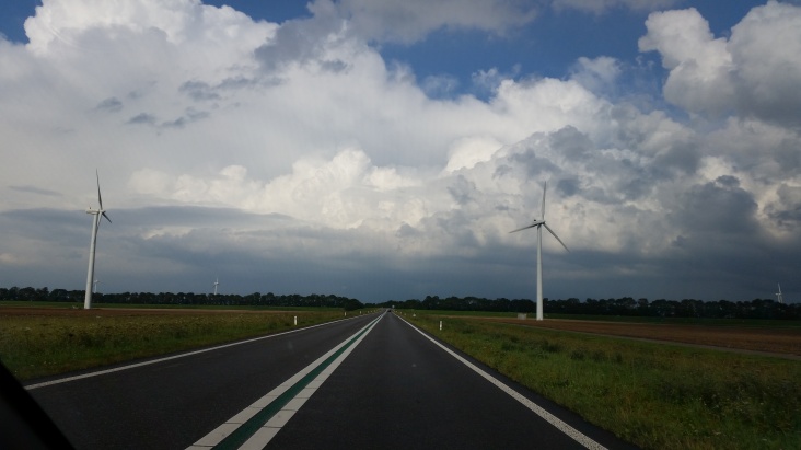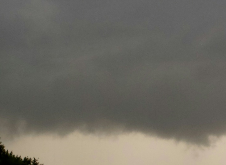 Was dat rond 18.00 ? Hier een foto vanuit Heerenveen richting Sintjohannesga rond die tijd. Even daarvoor leek een wallcloud zichtbaar die zich vernauwde tot deze uitzakking.