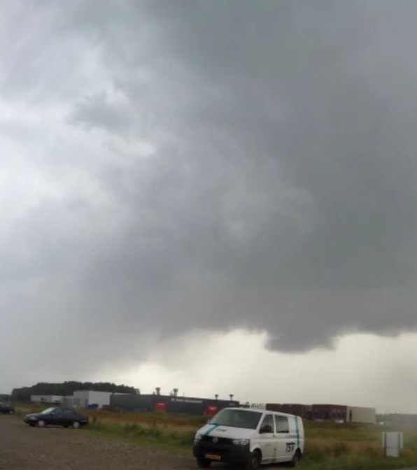 Timelapse rond 18.00 in Heerenveen. Roterende wallcloud en rear flank downdraft. In Oudehaske zijn ook 2 bomen en een stacaravan omgewaaid tijdens passage. fotos van www.flitsnieuws.nl: