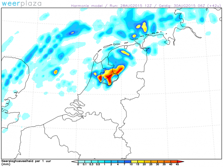 In general, confidence in organized DMC is highest along the front and hence the level 1 was issued for that region. Further broadening of the level 1 area may be needed if confidence in CI further east increases with later model runs. Cap strength has to be monitored closely. | Gewijzigd: 28 augustus 2015, 22:52 uur, door Sven