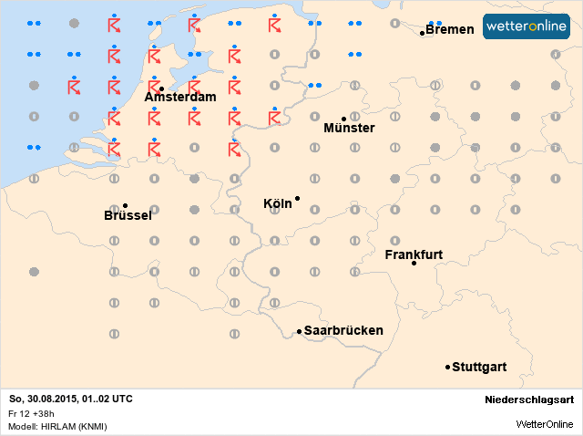 De weermodellen berekenen zeer verschillende scenario's: GFS maakt het zaterdagavond op de Rheinlad oorzaak onweersbuien en berekend voor de nacht op zondag op een enorme brok van de storm te trekken dan Nedersaksen naar Hamburg en Sleeswijk-Holstein. EZMWF is al aanzienlijk gestopt. Hier het droog blijft in het Westen en alleen het noorden en noordwesten van zaterdag nacht "off". EURO4 kan het zelfs alleen maar in de nacht van zondag komen aan individuele zware onweersbuien die trekken langs de kust naar het oosten.