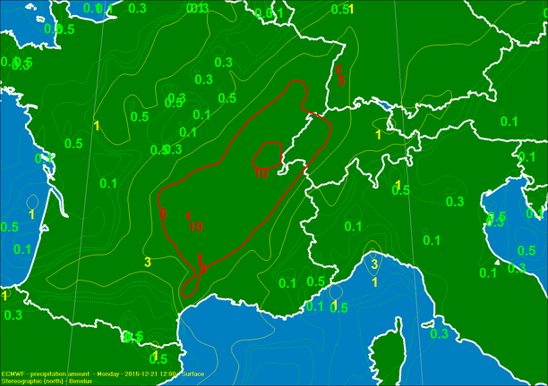 Neerslag nacht maandag op dinsdag (12uur hoeveelheid, ECMWF)