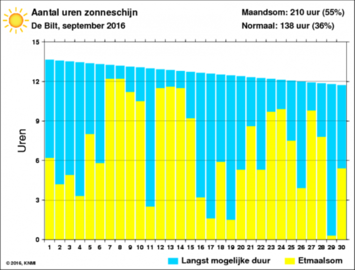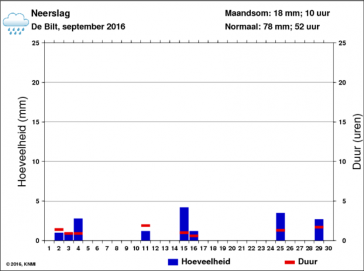 Normaal=het langjarig gemiddelde over het tijdvak 1981-2010 - De Bilt, 1 oktober 2016/Adrie Huiskamp