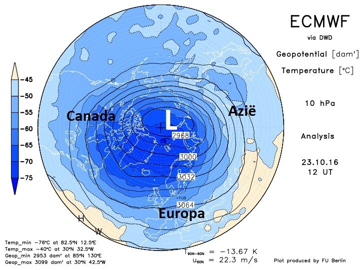 Om te begrijpen wat er gaat gebeuren is het goed om te begrijpen wat de poolwervel precies is. De poolwervel is een enorm lagedrukgebied wat zich iedere winter boven de Noordpool vormt in de stratosfeer. De stratosfeer zelf is een luchtlaag tussen ongeveer 10 en 50 kilometer hoogte. De stratosfeer is ook waar de ozonlaag aanwezig is. Ter vergelijking: vliegtuigen vliegen vaak op ongeveer 12 kilometer hoogte. Dat is dus ongeveer de onderkant van de stratosfeer.
