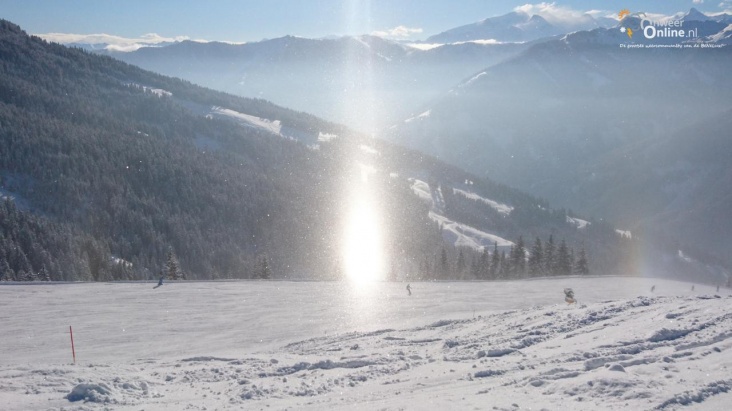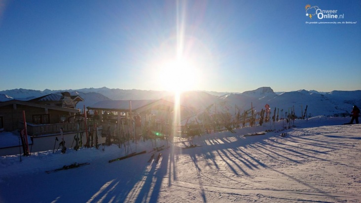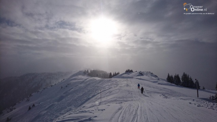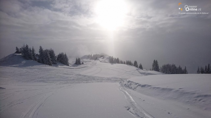 Vandaag wederom een fraaie dag met wat lagere temperaturen dan zaterdag en continue afwisseling tussen sneeuwbuien en zon. Vooral op de toppen nog veel wind en erg koud.