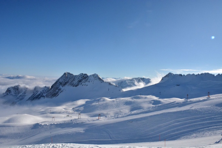 Gevlogen op Innsbruck (waar je trouwens in een uurtje staat) en van hieruit was mijn uitvalsbasis. Eerst dag onmiddellijk richting de Nordkette gegaan (bergketen vlak aan Innsbruck). Met 1 tandrandbaan en 2 kabelbanen ben je in zo een 20-tal minuutjes vanuit het centrum van de stad tot op 2300 meter hoogte!Het was een prachtige zonnige dag, tot ik natuurlijk boven was toen er wolkenvelden kwamen opdagen: