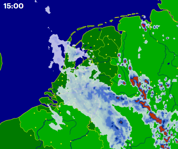 deze laat de buien steeds meer zuid-oostelijker zien..