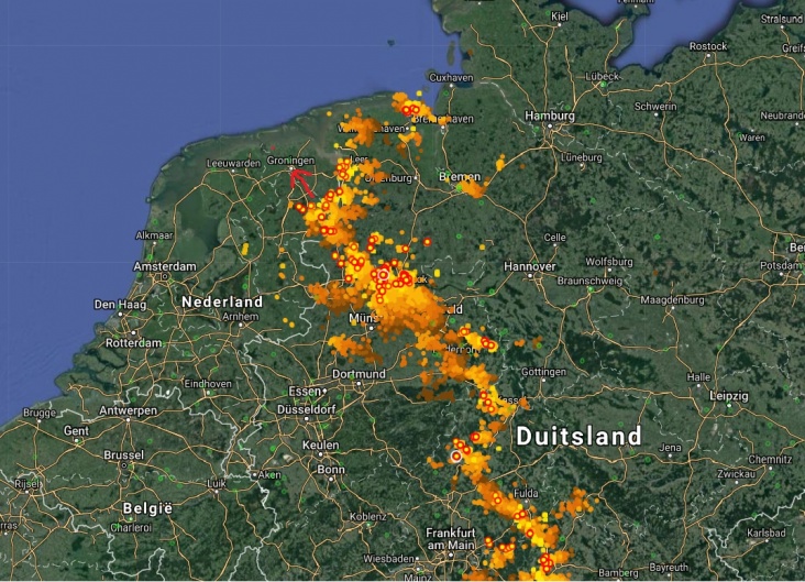 Onweer richting Nederland