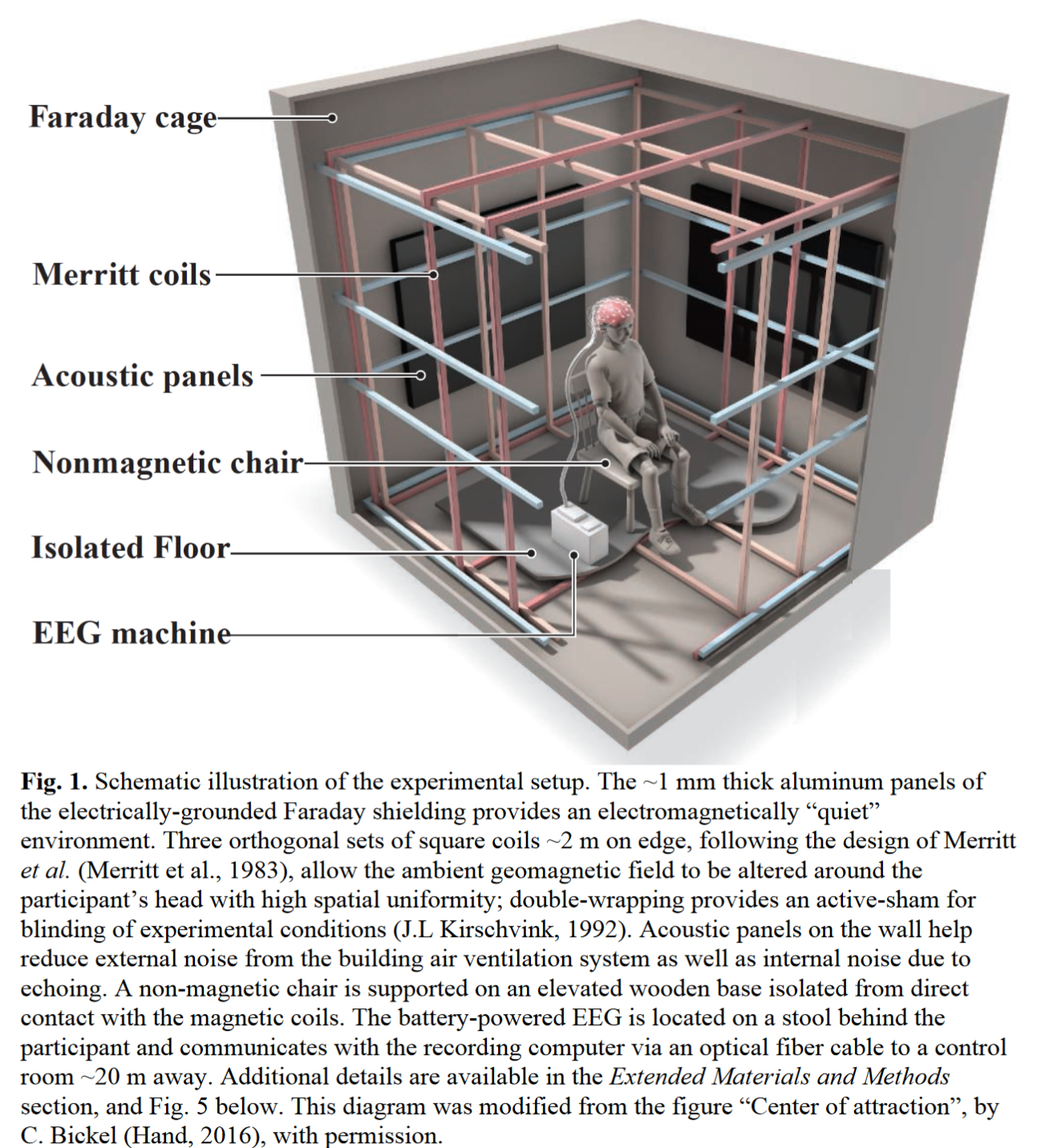 To find out if humans can indeed sense magnetic fields, the researchers built an isolated radiofrequency-shielded chamber where participants sat in utter darkness for an hour. As magnetic fields shifted silently around the chamber, participants' brain waves were measured using electrodes positioned at 64 locations on their heads.