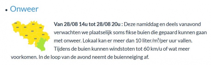 KMI geeft code geel voor de westelijke provincies