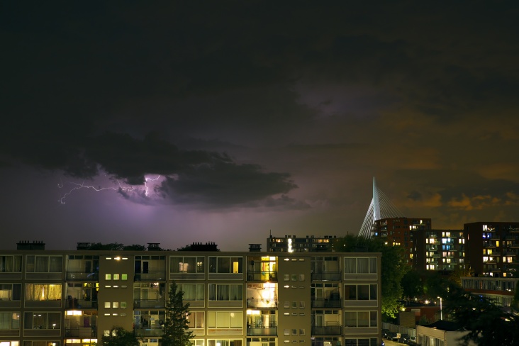 Er trok een flinke onweersbui over Rotterdam.#Rotterdam #Onweer #Erasmusbrug @RTV_Rijnmond @helgavanleur @EdAldus @pietsweer @weeronline @NoodweerBenelux pic.twitter.com/JaXxMUtnOR