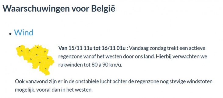 Zoals jullie waarschijnlijk al gemerkt hebben, is de wind in kracht toegenomen. Dit zal tijdens de dag nog meer het geval zijn om uiteindelijk uit te komen op lokaal windstoten van tegen de 100km/u (voorkeur voor ZW-Nederland en westelijk België). Hiervoor staat een code geel uit: