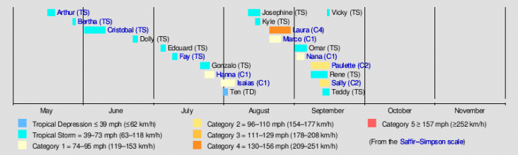 Tot dusver (we zijn nog maar halverwege) hebben we al heel veel tropische stormen met namen langs zien komen, echter bereikte ''nog'' maar 1 orkaan de status ''major hurricane'' (categorie 3 of hoger), dat was orkaan Laura (lees meer over orkaan Laura, klik hier). Wat intensiteit betreft is het dus een heel normaal seizoen (tot dusver).