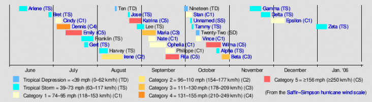 Recordhouder 2005 - 31 Atlantische stormen