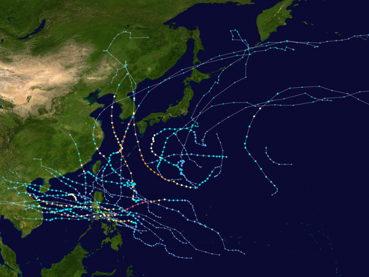 Verder hebben we nog de Filipijnen. Hier was geen synchroonlandfall, maar wel een snelle opeenvolging van stormen en orkanen die een strook van ruim 700 km kust troffen. In die strook ligt ook het dichtst bevolkte deel van het land, met ruim 6 miljoen inwoners. In deze strook kwamen al 12 tropische systemen aan land. Tussen sommige stormen & orkanen zaten slechts enkele dagen tijd!