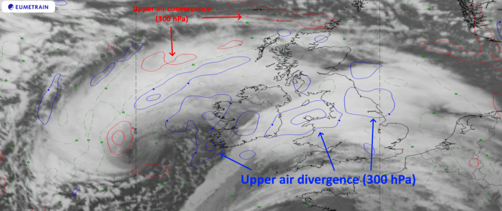 Divergentie in de bovenlucht (upper air divergence) zorgt voor extra stijgende lucht in een ontwikkelende storm, hierbij diept de storm extra snel uit. Zo kan explosieve cyclogenesis (bomcycloon) plaatsvinden.