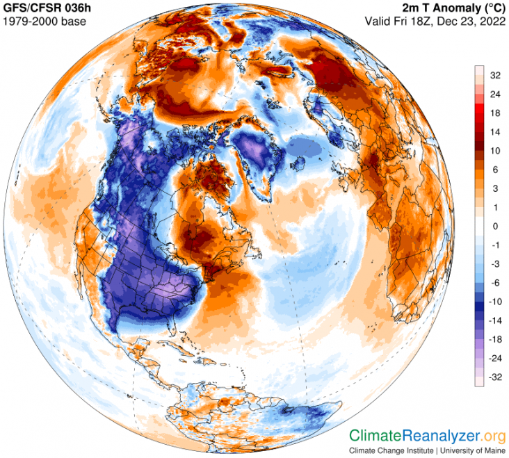 De kou is ook in de VS vrij tijdelijk, en zal enkele dagen aanhouden. Naar verwachting kan het vooral in Canada richting de jaarwisseling weer extreem zacht worden. De temperaturen liggen dan mogelijk 10 tot 28°C boven normaal.