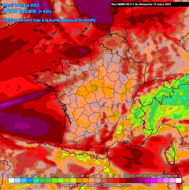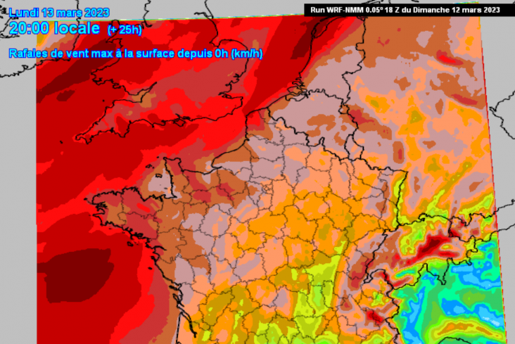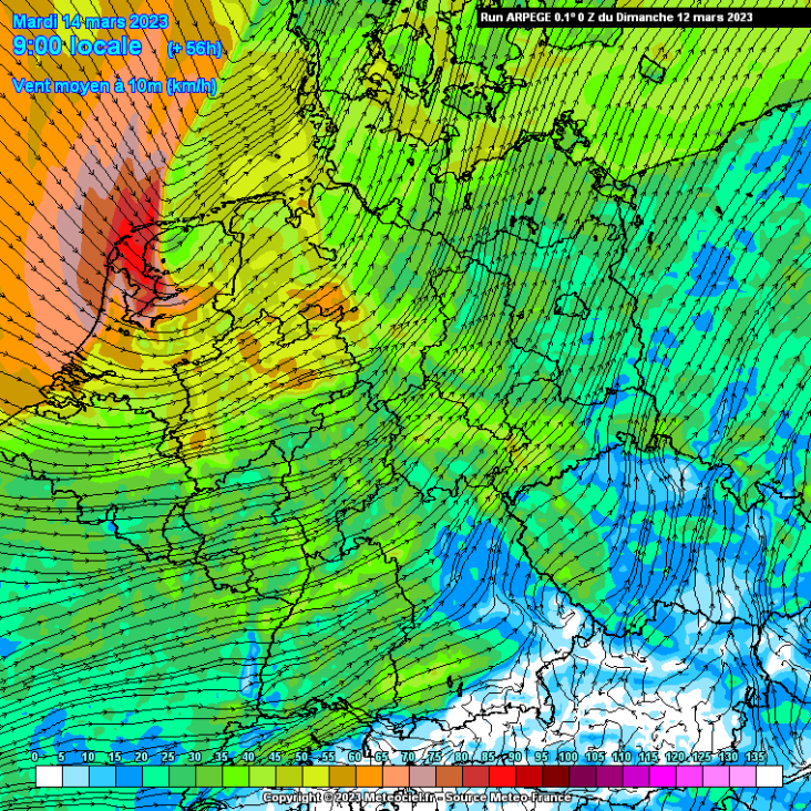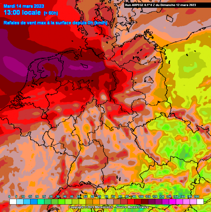 Arpege gaat ook mee windstoten 100 km/u en 75 km/u gemiddeld dus een 9 BFT;