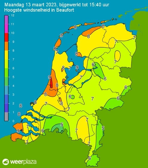 We zijn nog zo'n 12 uur verwijderd voor de laatste details, in de weerkaarten staat dat een uurgemiddelde van 9 BFT niet uitgesloten is op een van deze plekken; Hoek Van Holland, Wijk Aan Zee, Den Helder en de Waddeneilanden.